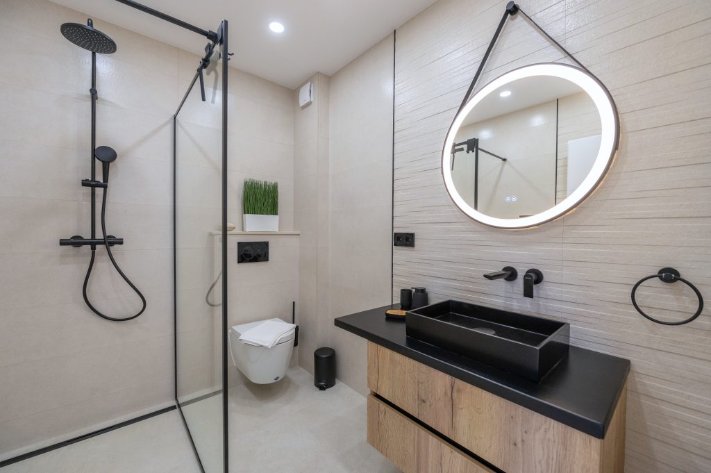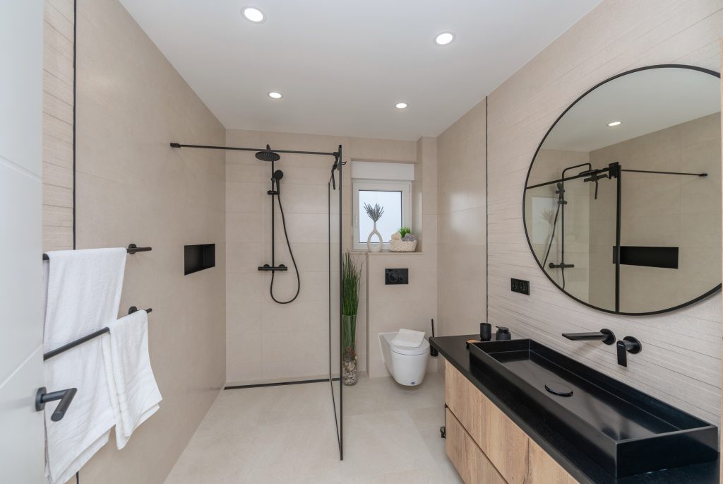 Die beiden modernen Badezimmer sind mit begehbaren Duschen ausgestattet und bieten höchsten Komfort.