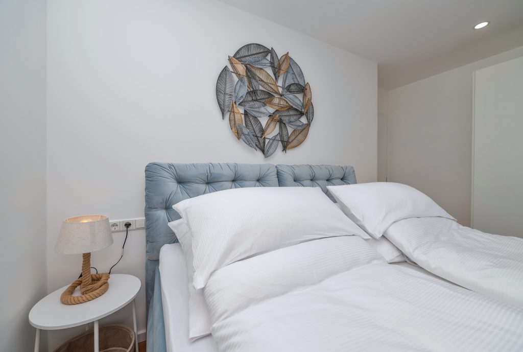 Das erste Schlafzimmer, komplett mit einem luxuriösen Boxspringbett und einem großzügigen Kleiderschrank ausgestattet, bietet Ihnen wahre Erholung.
