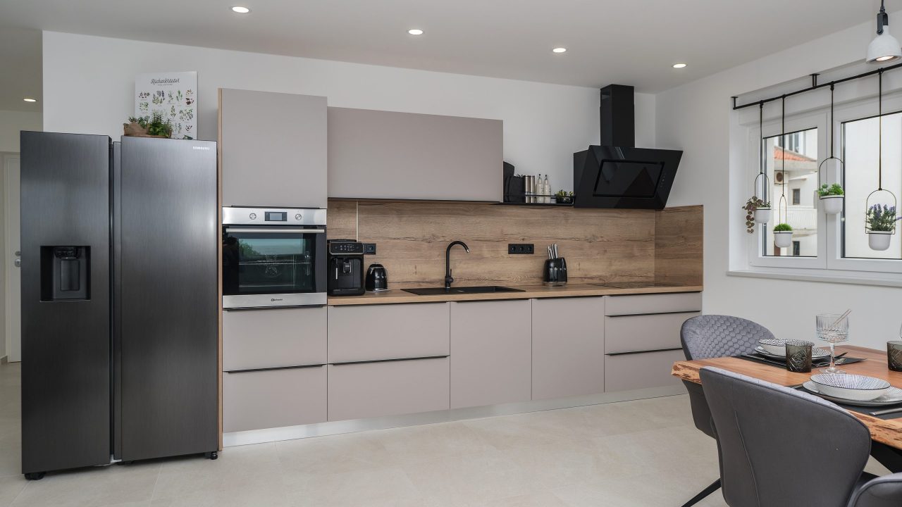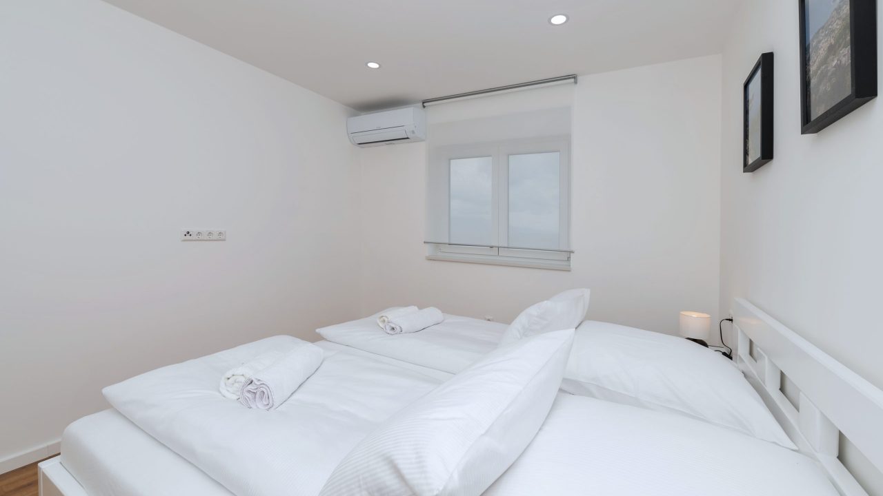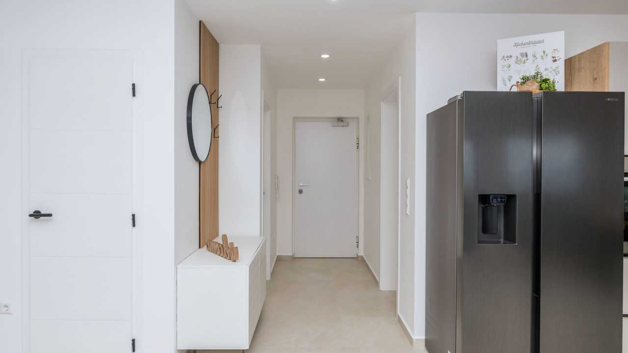 Die voll ausgestattete Küche lädt dazu ein, Ihre Lieblingsgerichte zuzubereiten und der angrenzende Technikraum verfügt über eine Waschmaschine für Ihre Bequemlichkeit. Alle Räume der Wohnung sind voll klimatisiert, so dass Sie sich auch an heißen Tagen stets wohlfühlen können. Ein Flachbildfernseher und WLAN sind ebenfalls vorhanden.