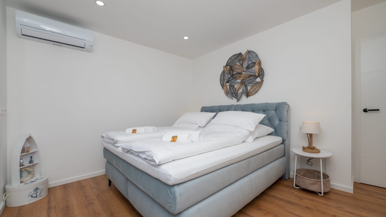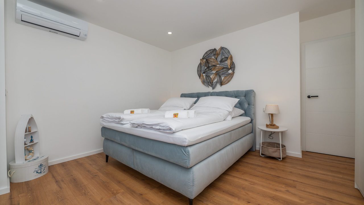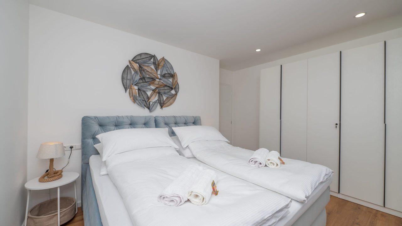 Das erste Schlafzimmer, komplett mit einem luxuriösen Boxspringbett und einem großzügigen Kleiderschrank ausgestattet, bietet Ihnen wahre Erholung.