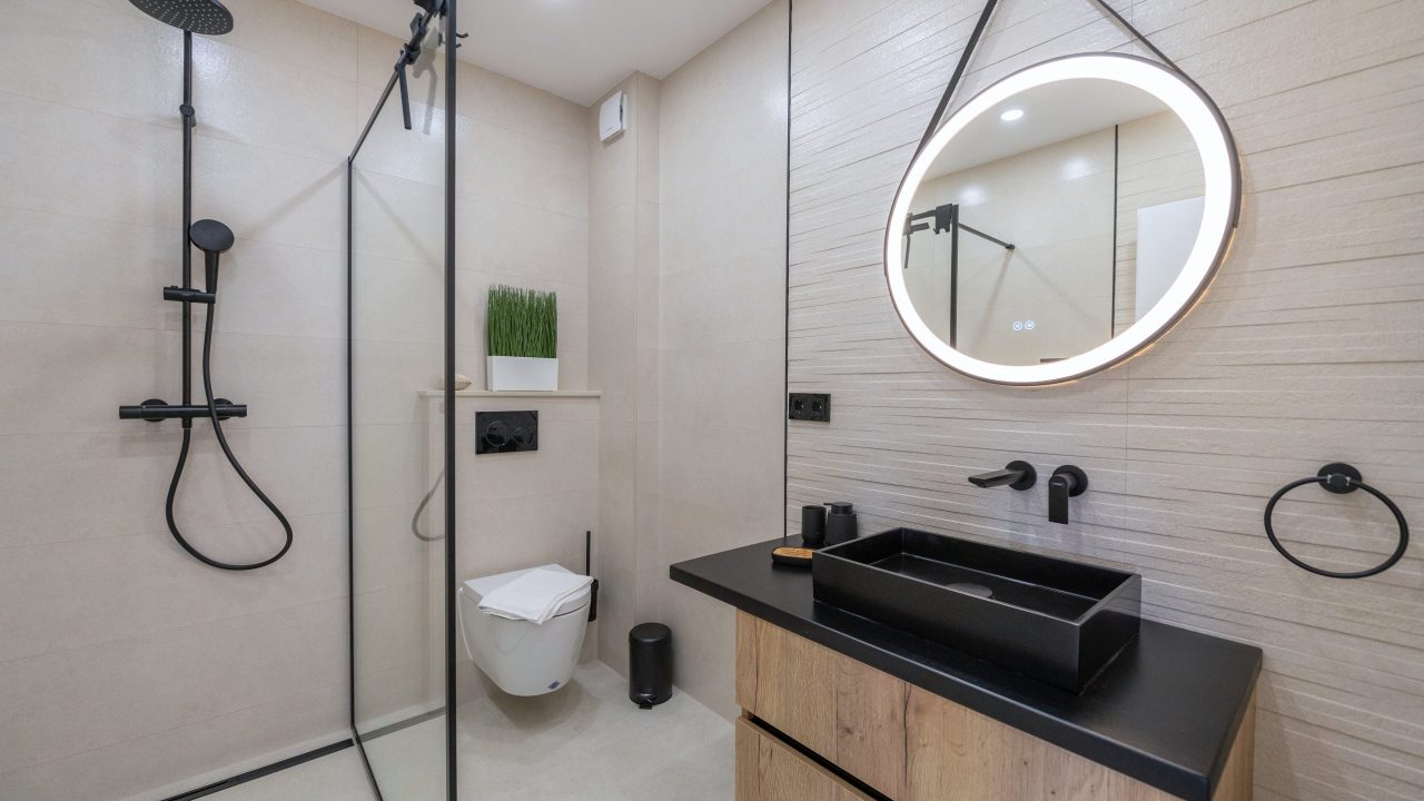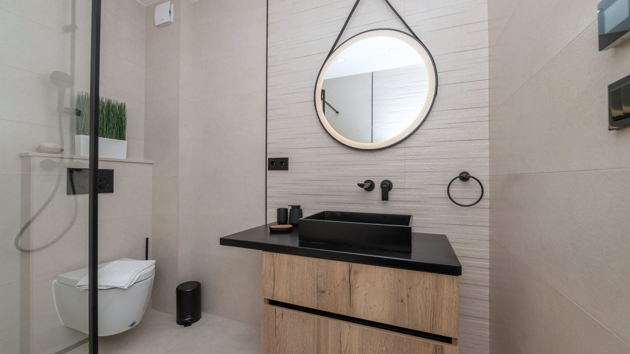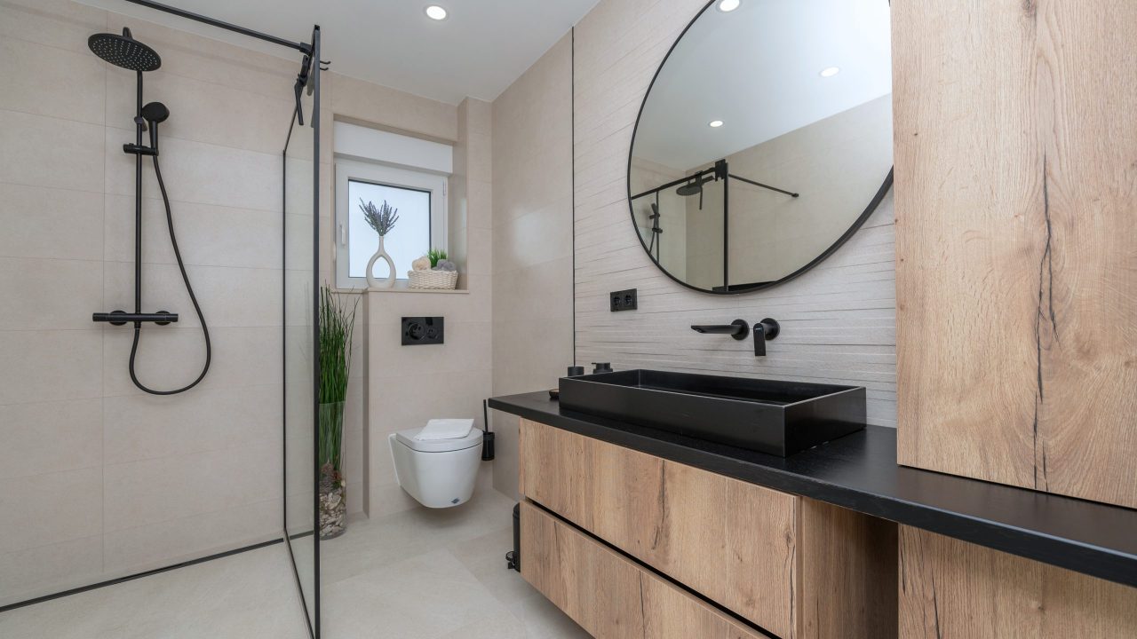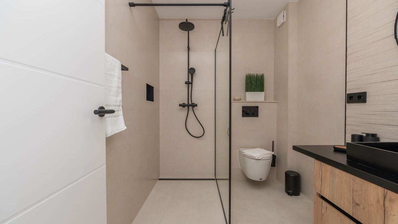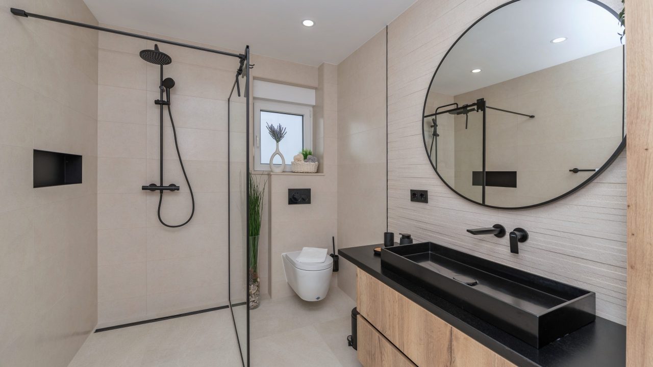 Die beiden modernen Badezimmer sind mit begehbaren Duschen ausgestattet und bieten höchsten Komfort.