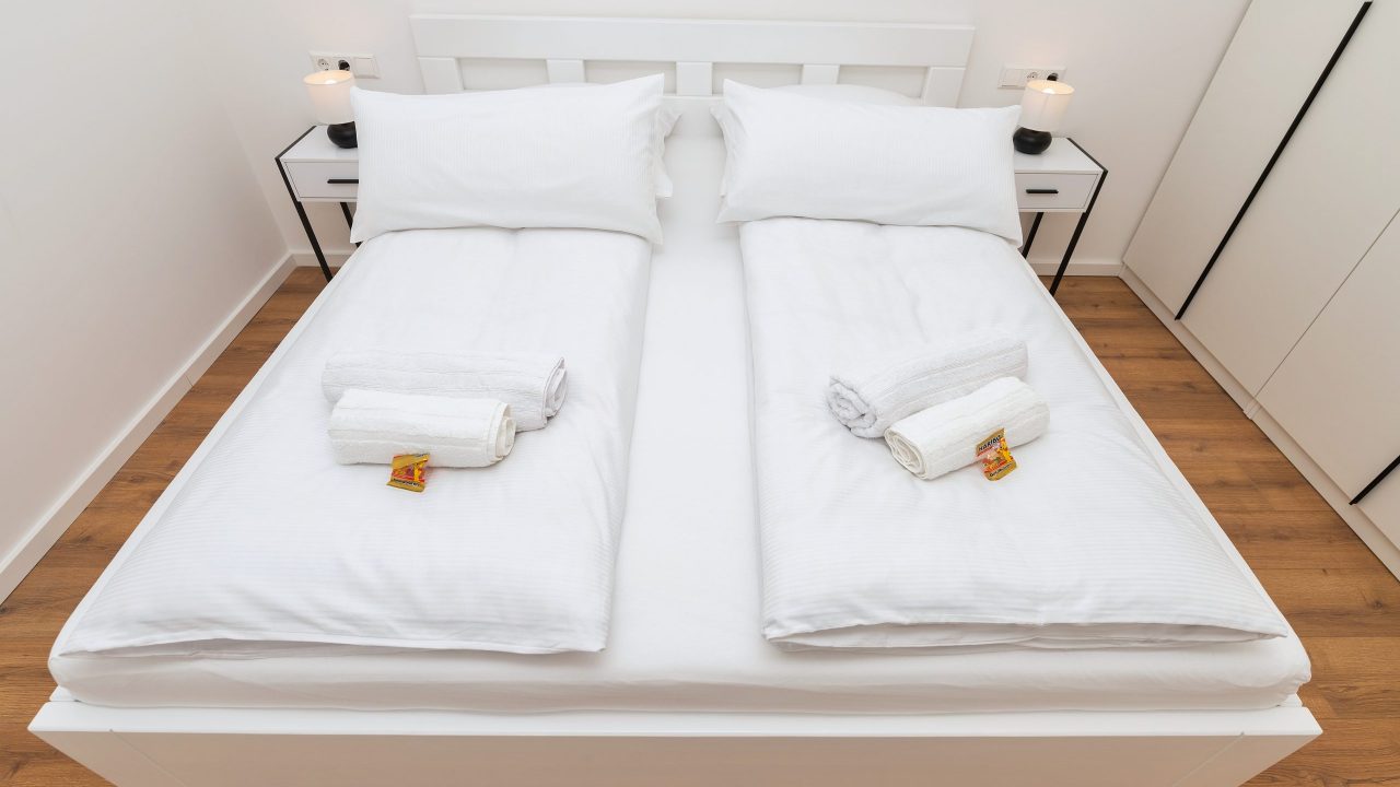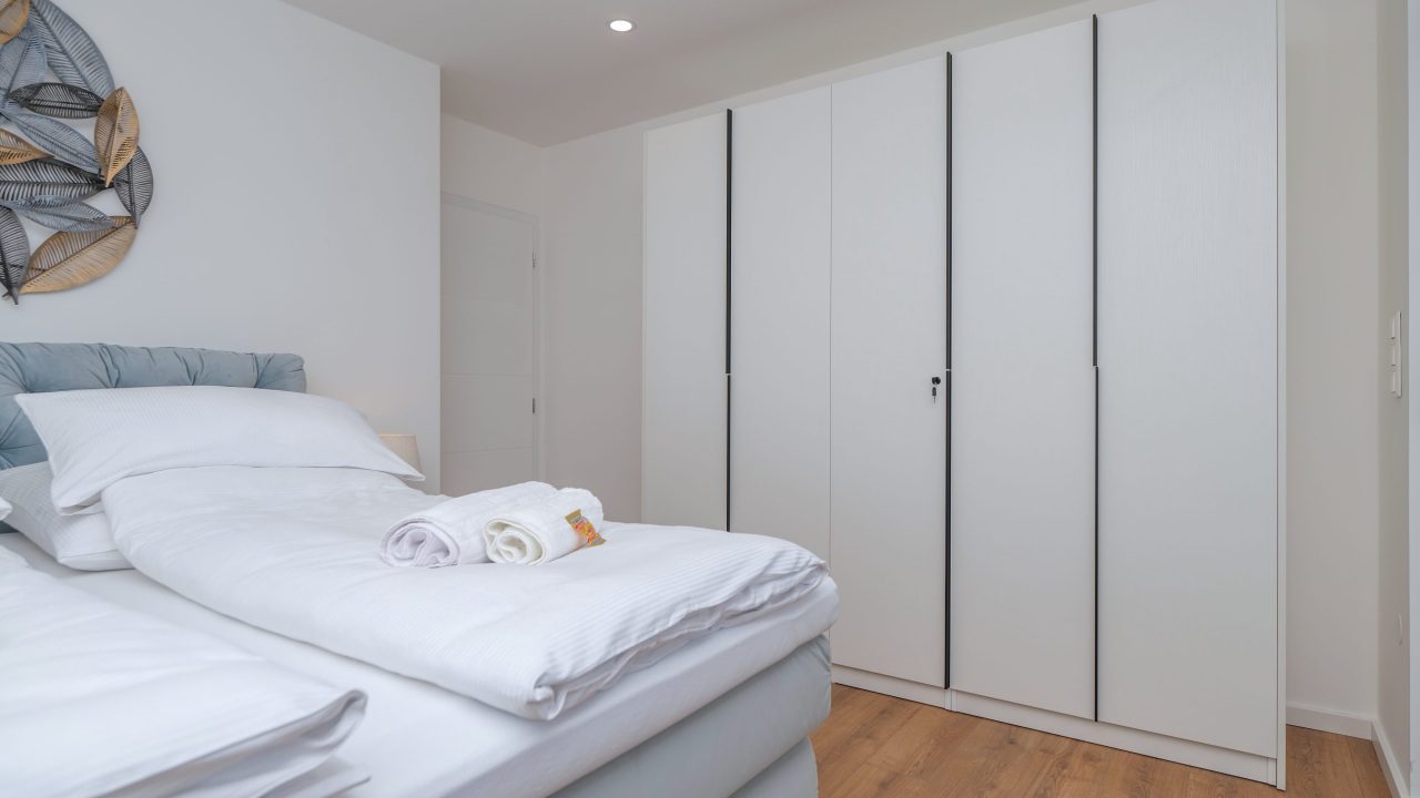 Das zweite Schlafzimmer mit seinem Doppelbett und Kleiderschrank bietet ebenfalls Komfort und GemĂĽtlichkeit.